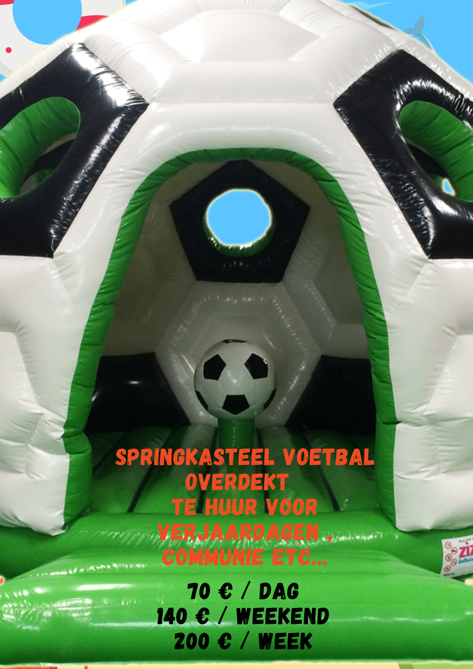 Regelmatig komen er nieuwe springkastelen bij . Voor Communie's en WK reserveer zeker tijdig